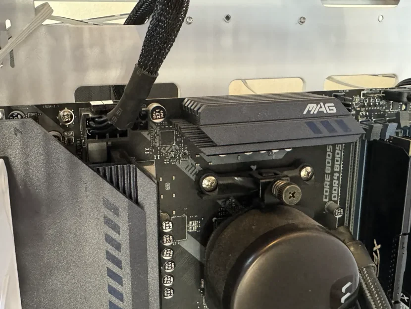 CPU用の電源を先に挿しておかないとラジエーターで塞がって取り付けられない可能性がありました。