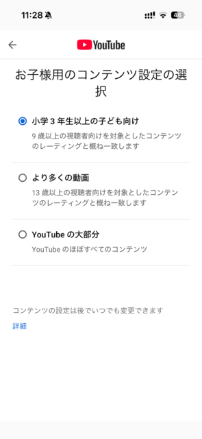 前述のファミリーリンクからYouTubeの制限もかけられます。
