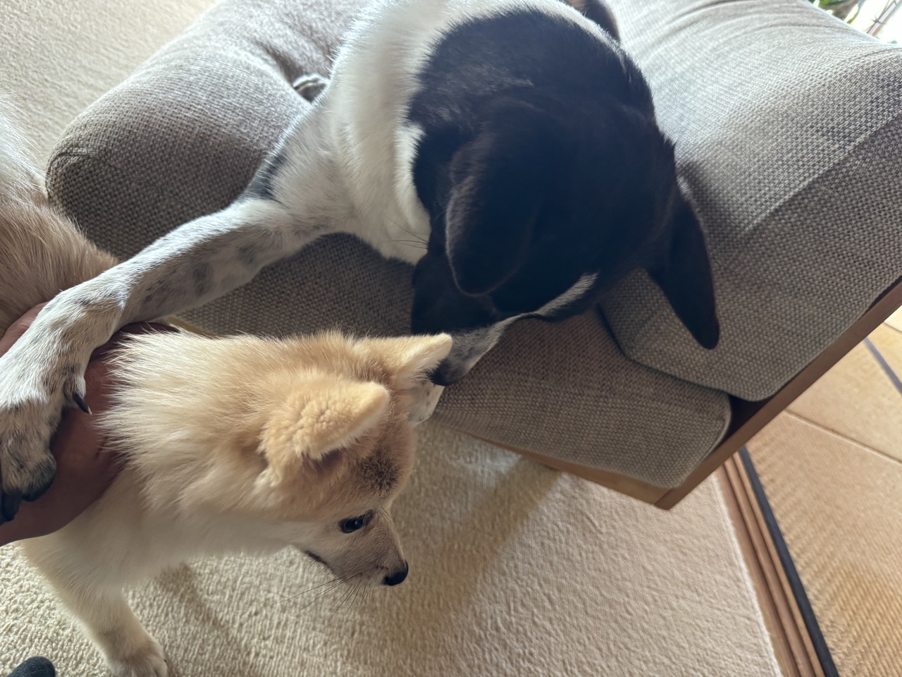 1歳7ヶ月の保護犬マッシュと、6ヶ月のポメ柴ヒメの顔合わせから一緒に生活…