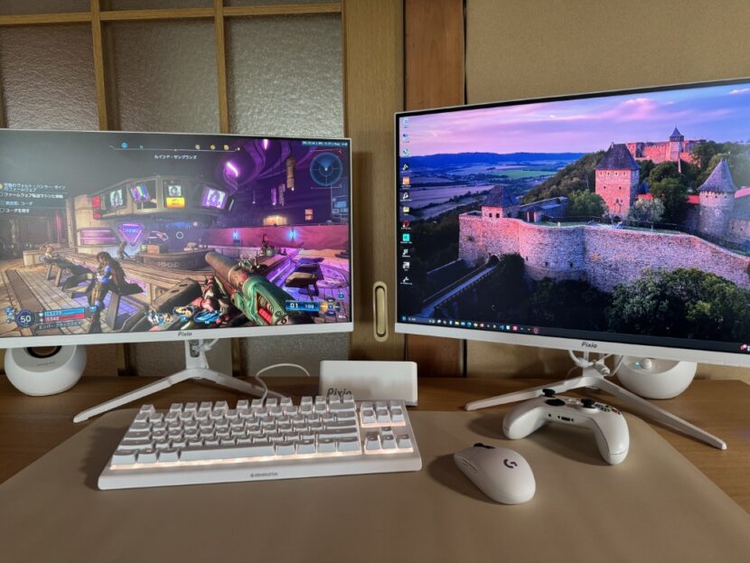 左がPixio PX248 Wave(1920p)、右がPixio PX278 Wave(1440p)です。