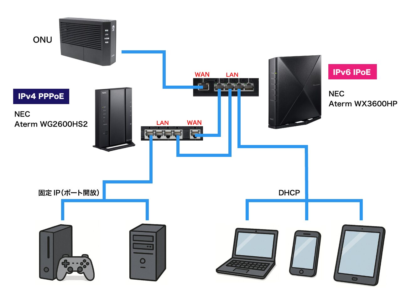 IPv6 IPoEとIPv4 PPPoEのプロバイダを同じネットワーク内で切り替える方法